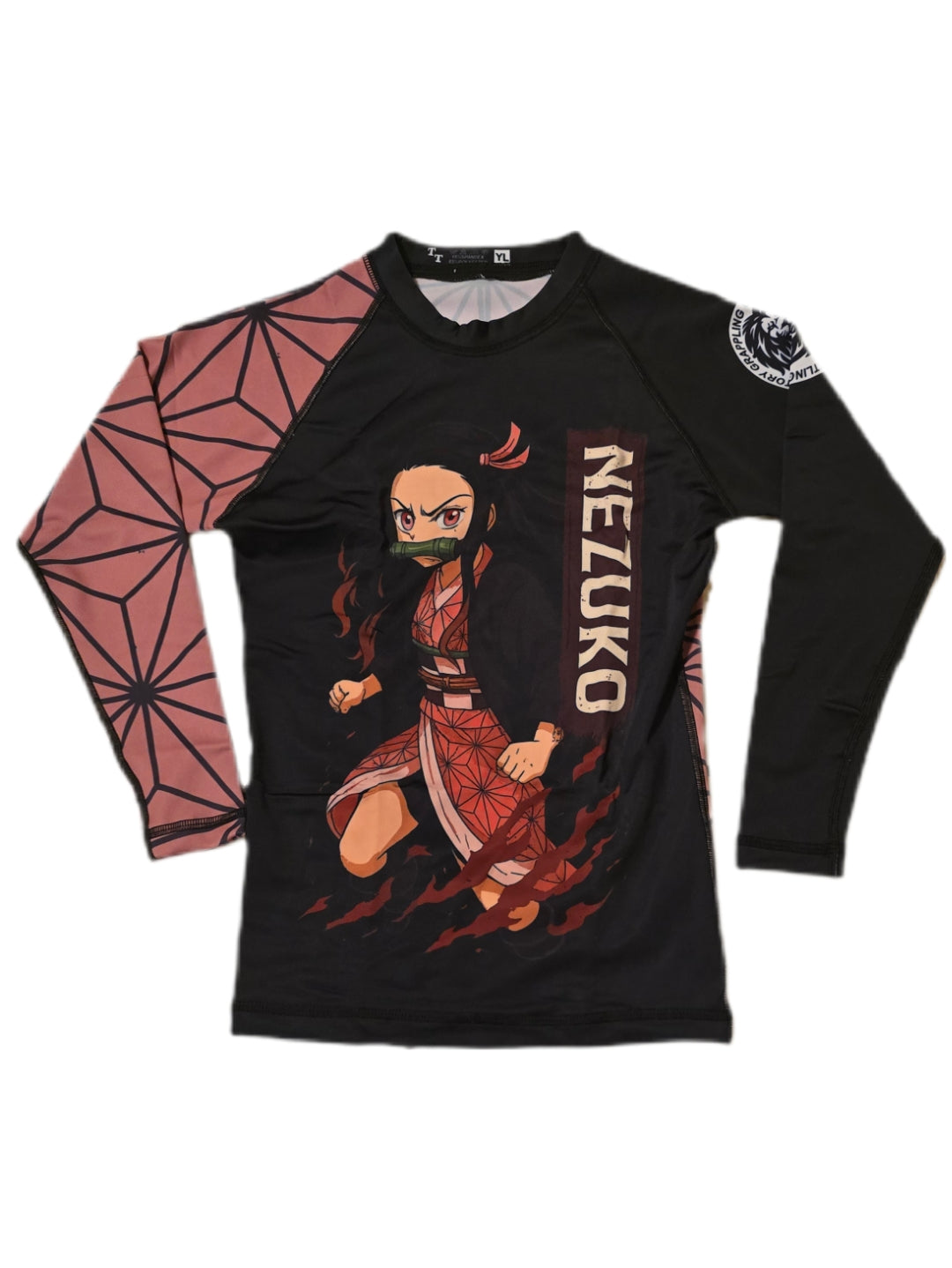 Pink and Black Long Sleeve Rashguard with Nezuko design